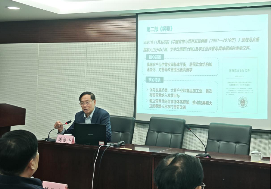 12月16日,國家糧食和物資儲備局科學研究院舉辦第55期“糧科大講堂”,邀請國家食物與營養咨詢委員會主任、中國農業技術經濟學會會長陳萌山作“貫徹落實新綱要精神,推動食物營養健康產業高質量發展”專題學術報告。局總工程師、院黨委書記滕增泰,院黨委副書記、院長譚本剛出席。